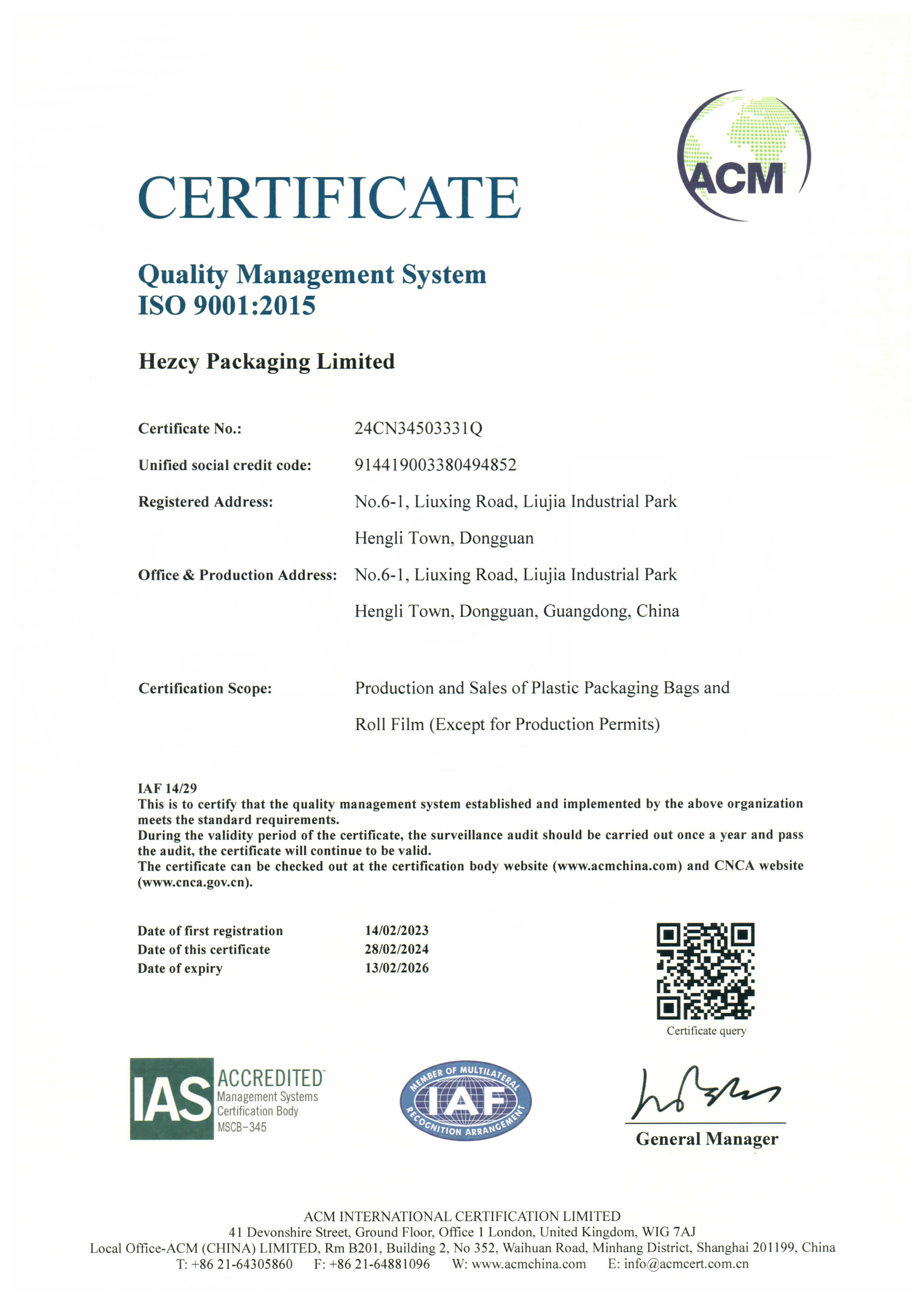 As a result, Hezcy has the resources to invest in a seamless 24-hour customer service process, as well as truly industry-defining technology like Gravure printing. Think of Hezcy as the world standard in packaging – we help you raise the standard and solve problems you didn't even know you had!